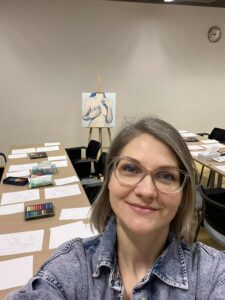 Od 9 ruszyłyśmy z pacjentkami do warsztatów z suchych pasteli, mimo małej ilości czasu miałyśmy sporo frajdy i uczestniczki zabrały ze sobą własną interpretację mojego obrazu:)